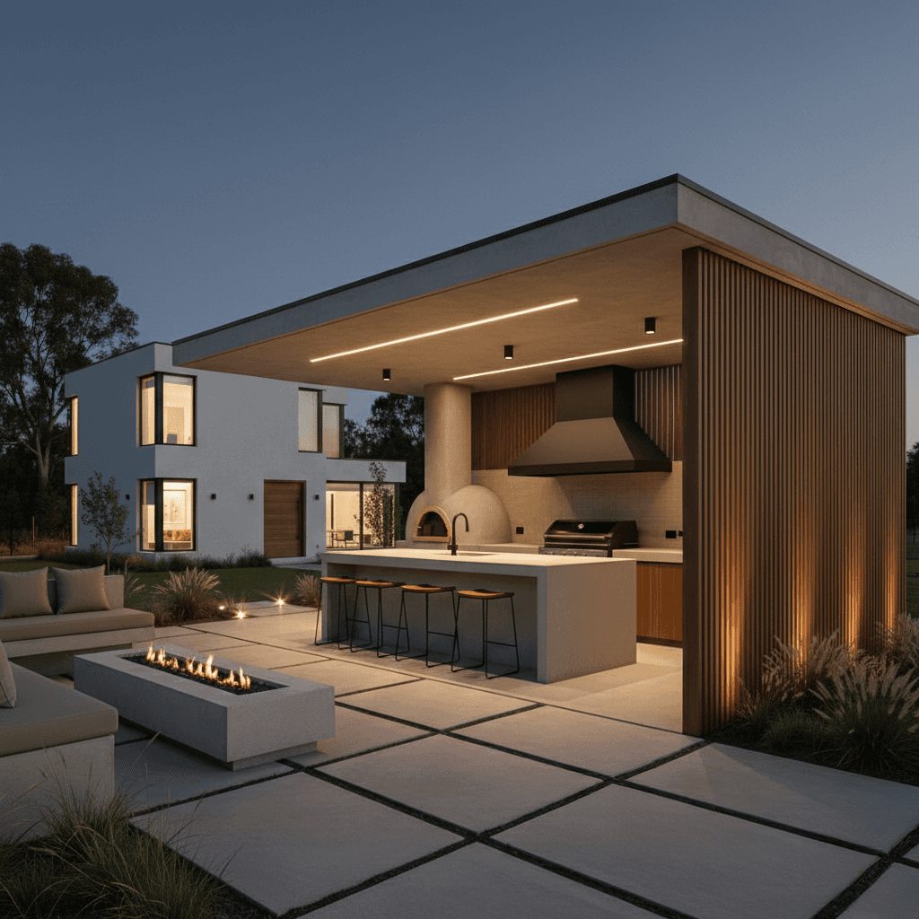 Nos encargamos de la ejecución integral: estructura, cubierta, instalaciones eléctricas, iluminación, parrilla con mesada y bacha, piso exterior y terminaciones preparadas para uso intensivo. Planificamos por etapas para sostener un avance ordenado y cuidar el entorno de la vivienda.