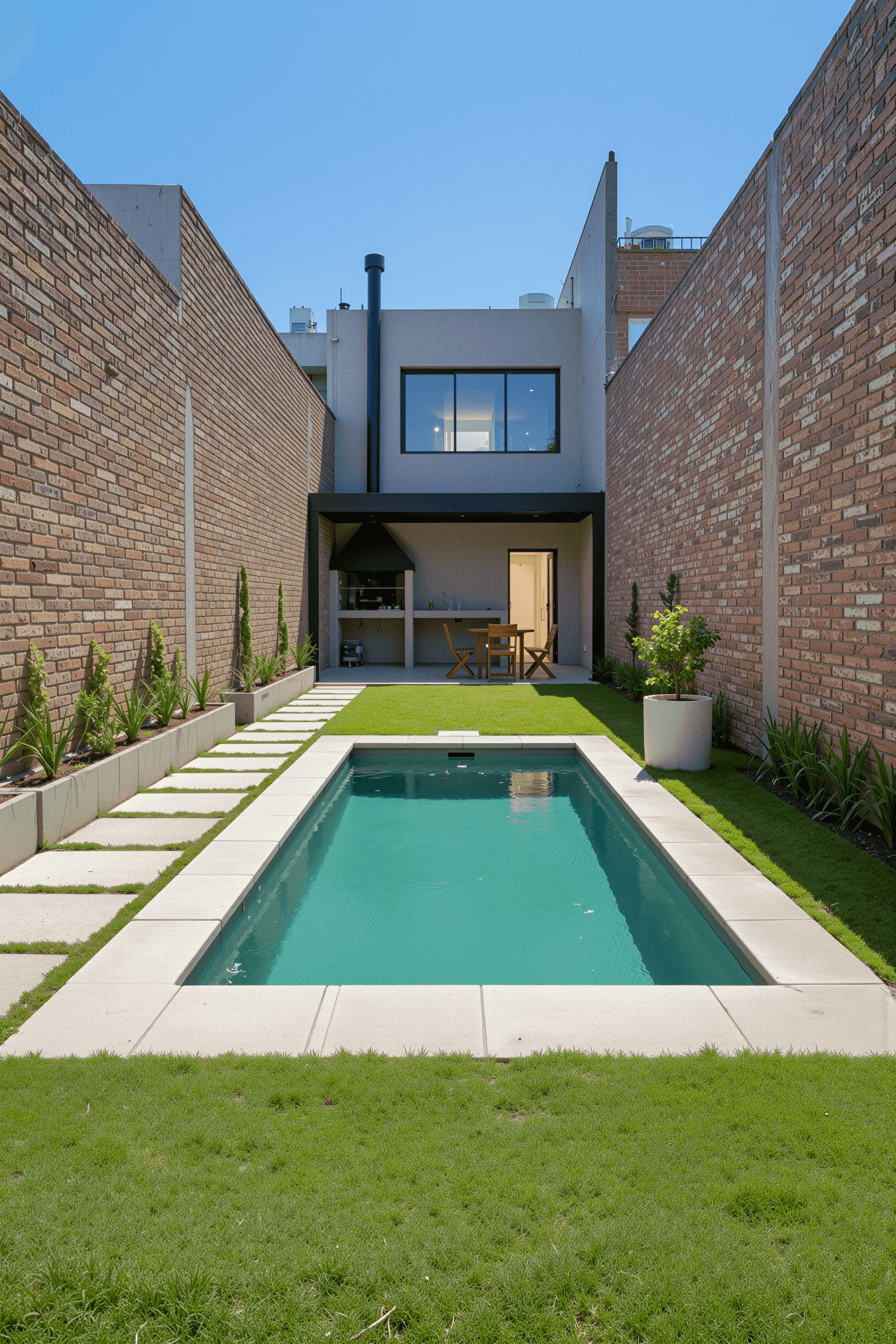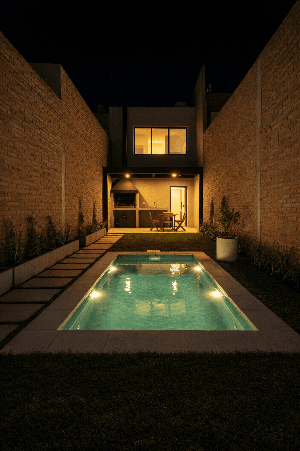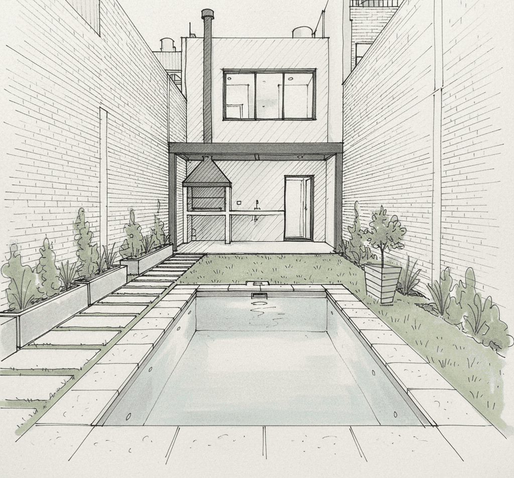 El objetivo fue sumar una mini piscina premium para refrescarse y relajarse, aprovechando un patio con espacio reducido sin perder funcionalidad.